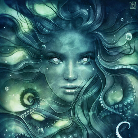 Naia doesn’t lie, although that doesn’t mean she always tells the truth. A weaver of words, her manipulative nature and tendency to be extremely secretive can make it difficult to ascertain her true intentions. Yet there is wisdom within this honor-bound keeper of memories, and she will share it with those deemed worthy by her Lord of Tides, Hermaeus Mora.With a tendency to be melancholic, Naia often focuses on the past and finds herself drawn to those considered troubled, pained, and broken. Those who earn her favor hold a double-edged blade, for she is loyal and protective, yet vain and possessive. Should her pride be bruised, her ire will be swift.